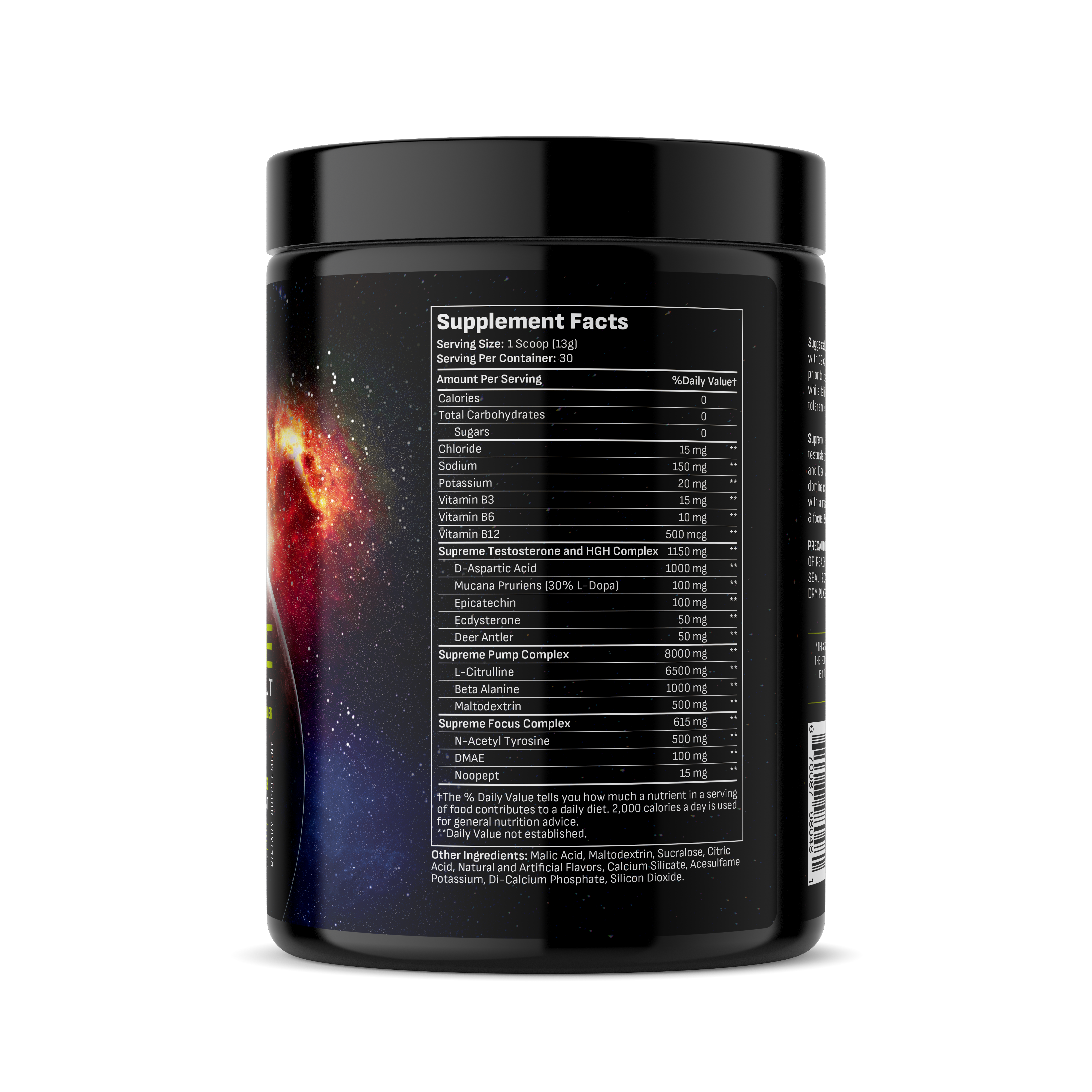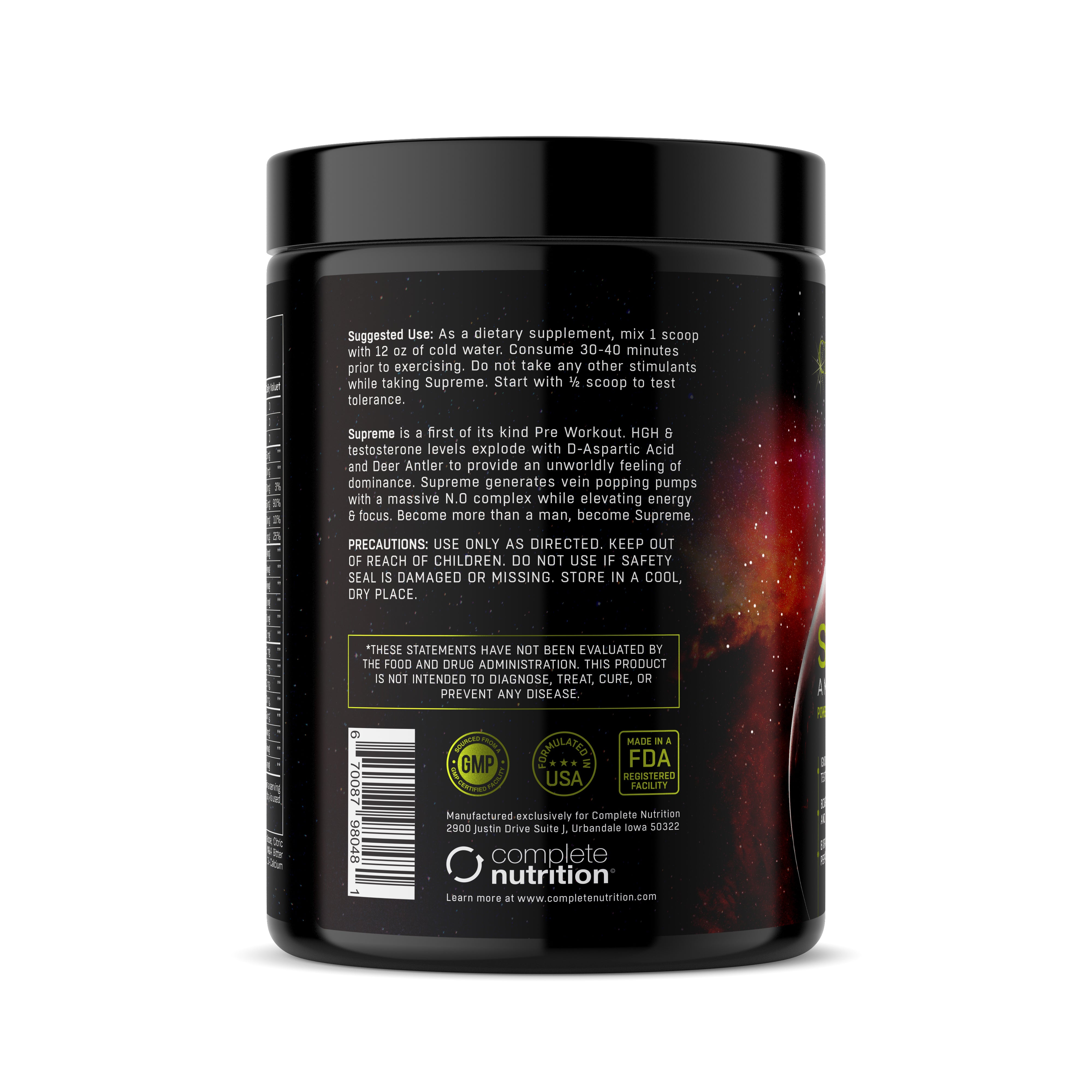 Supreme is the first of its kind Pre-workout. Supreme is designed specifically for men looking for the next level in pre-workouts. It is simply not a Girly Man's Pre-workout. Supreme is engineered to raise testosterone levels through the roof with D-Aspartic Acid and at the same time spike HGH levels with Deer Antler. Not to mention Supreme provides mind blowing pumps and smooth energy.