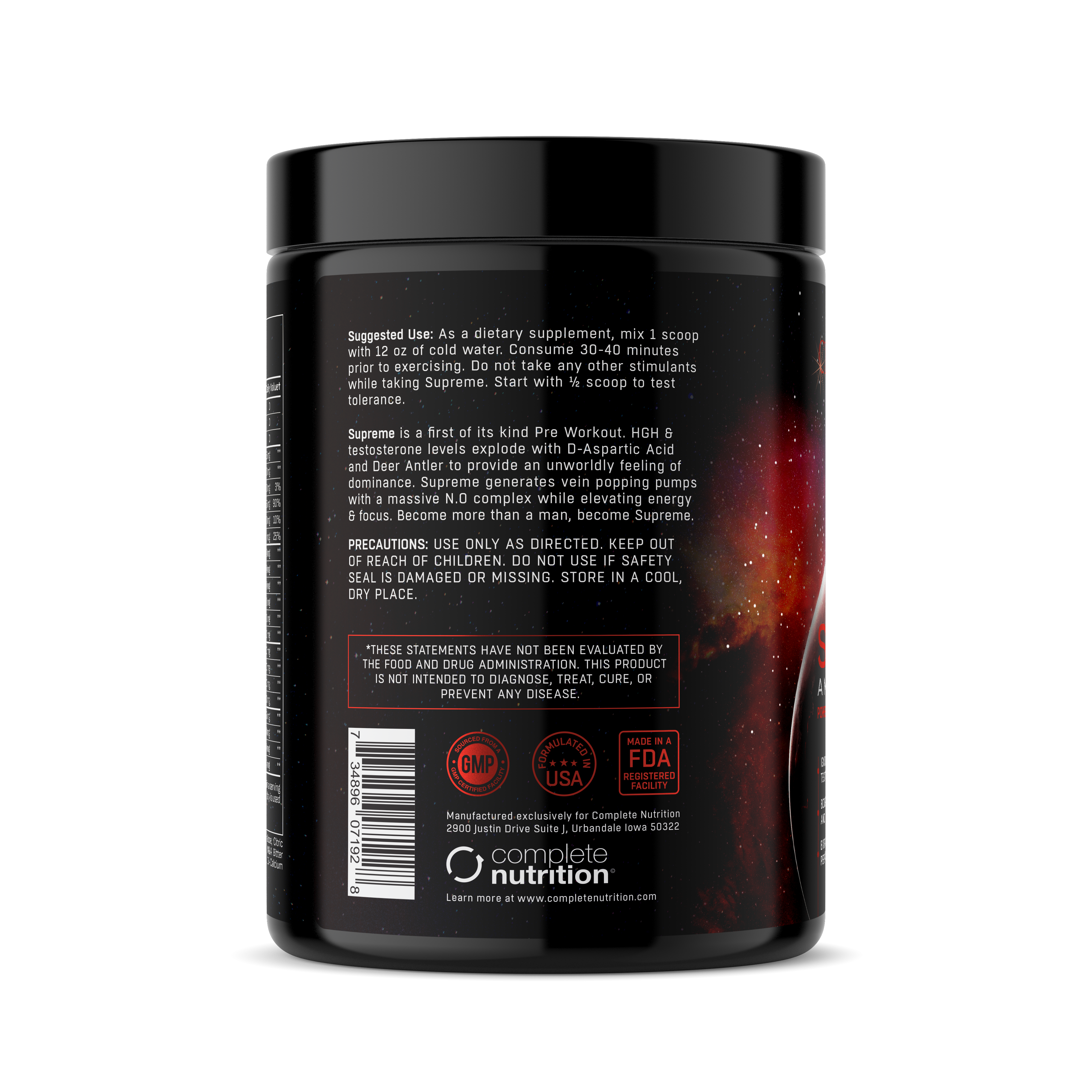 Supreme is the first of its kind Pre-workout. Supreme is designed specifically for men looking for the next level in pre-workouts. It is simply not a Girly Man's Pre-workout. Supreme is engineered to raise testosterone levels through the roof with D-Aspartic Acid and at the same time spike HGH levels with Deer Antler. Not to mention Supreme provides mind blowing pumps and smooth energy.