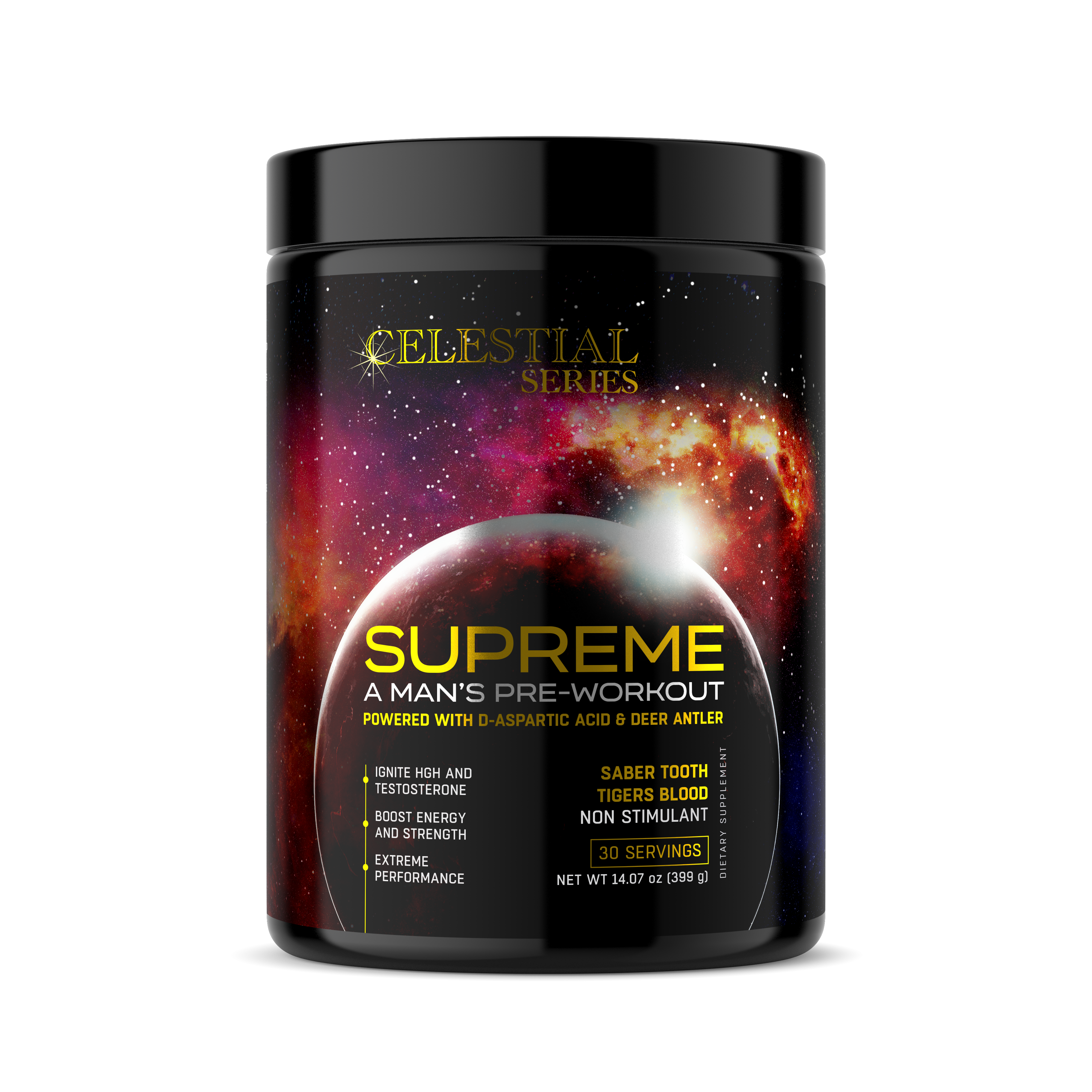Supreme is the first of its kind Pre-workout. Supreme is designed specifically for men looking for the next level in pre-workouts. It is simply not a Girly Man's Pre-workout. Supreme is engineered to raise testosterone levels through the roof with D-Aspartic Acid and at the same time spike HGH levels with Deer Antler. Not to mention Supreme provides mind blowing pumps and smooth energy.