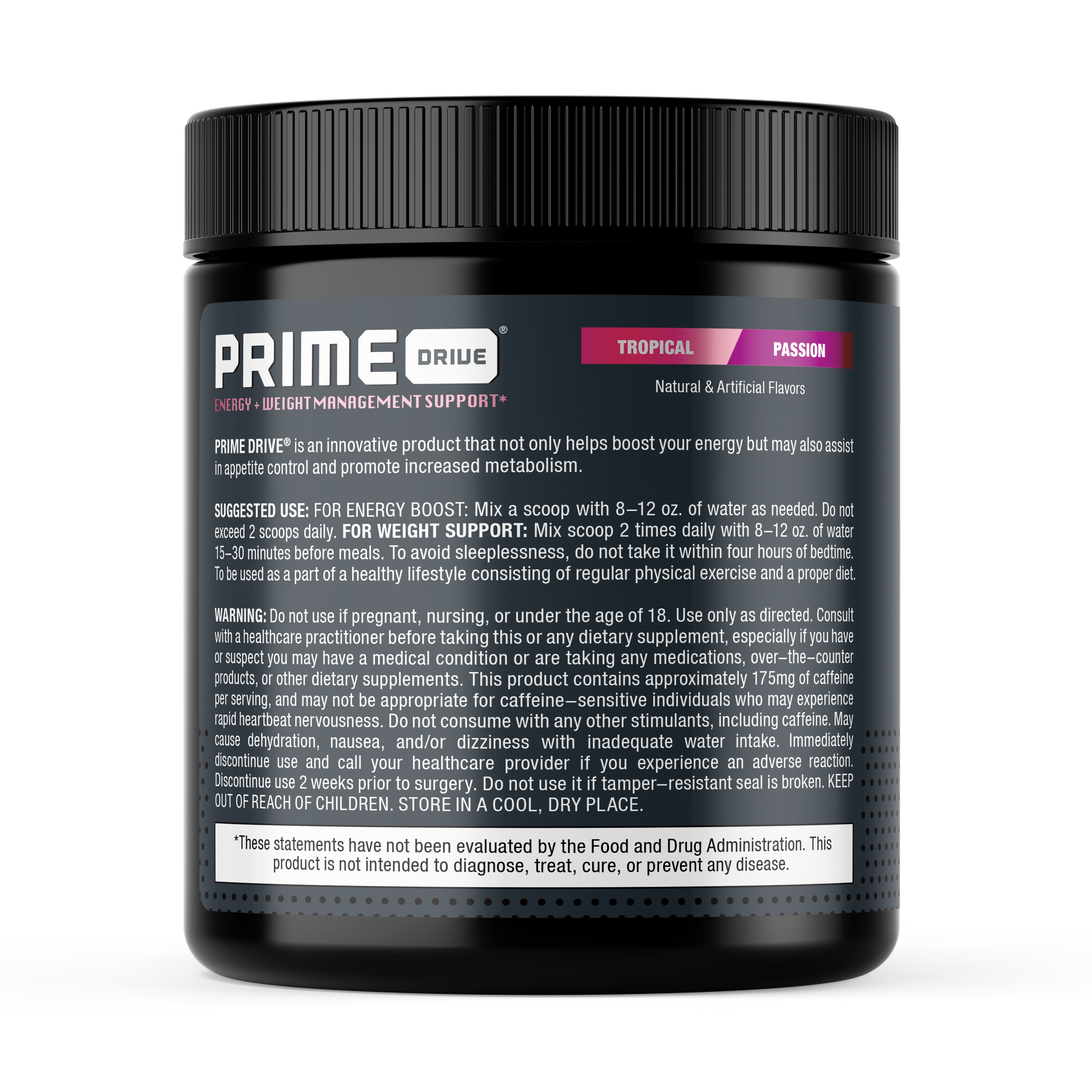 Prime Drive® is an advanced energy and weight loss powder that not only increases metabolism, but also helps reduce body fat to yield the best results.* This premium supplement provides the ultimate weight loss support, specially formulated with a powerful blend of ingredients designed to increase thermogenesis, burn fat, control appetite and cravings, boost energy, and enhance mental focus.*